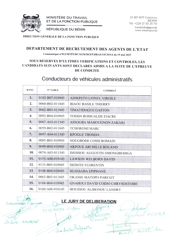 Les candidats admis pour le poste de Conducteur de Véhicules Administratifs viennent de franchir une étape décisive. Le MEF félicite chaleureusement les lauréats et encourage tous les participants pour leurs efforts.