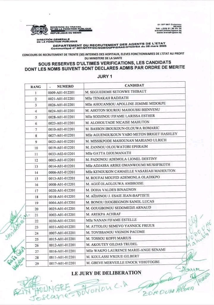Les résultats tant attendus du concours de recrutement de trente internes des hôpitaux, élèves fonctionnaires de l’État, ont été officiellement publiés. Cette nouvelle cohorte vient renforcer les effectifs dans les structures hospitalières publiques et témoigne de la volonté du gouvernement de soutenir le système de santé à travers la formation de professionnels compétents et engagés.